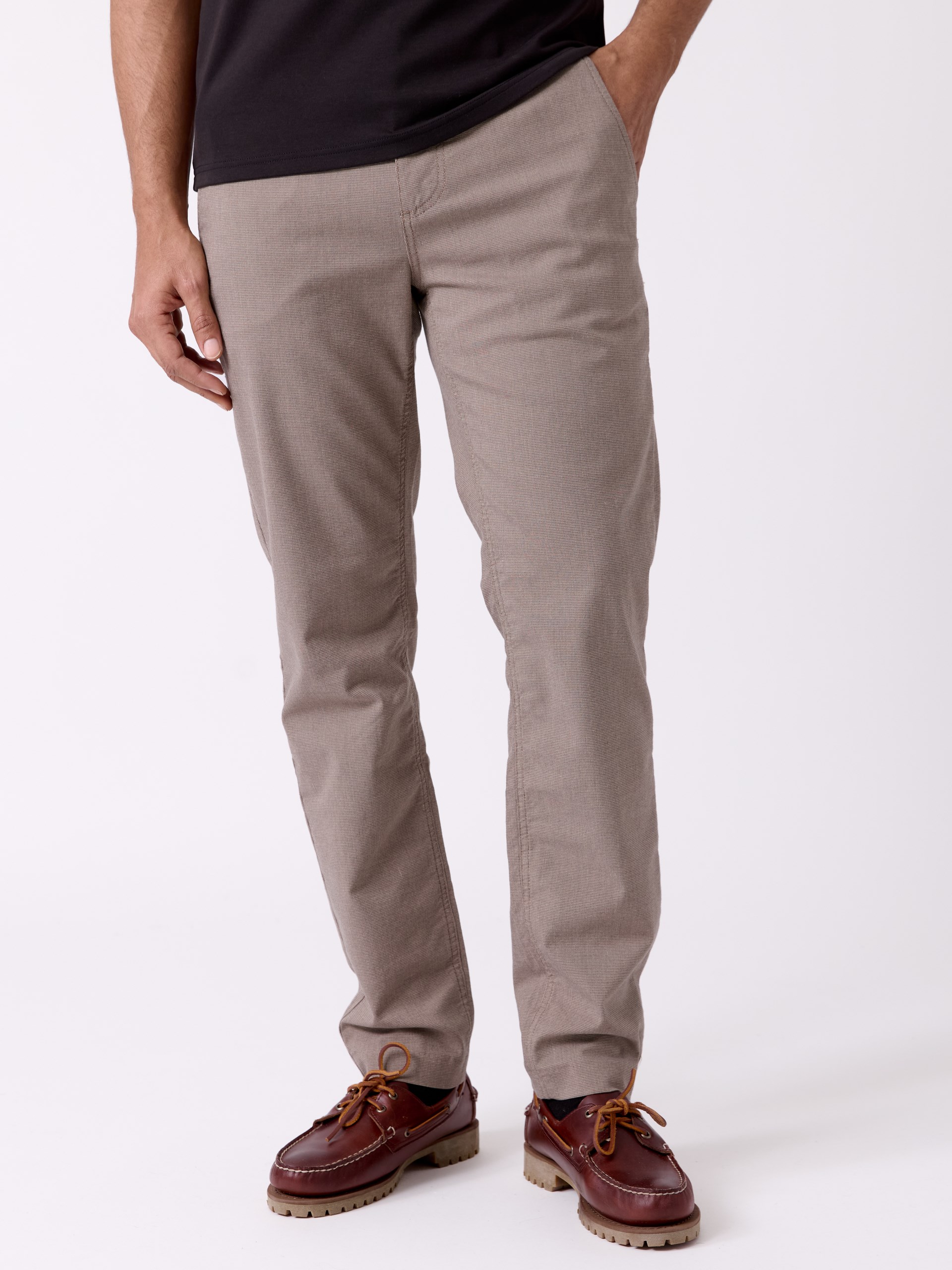Regular Structure Chinobukse er laget i en myk 390 grams brun-tonet strukturkvalitet i en bomulls-blend med viskose.