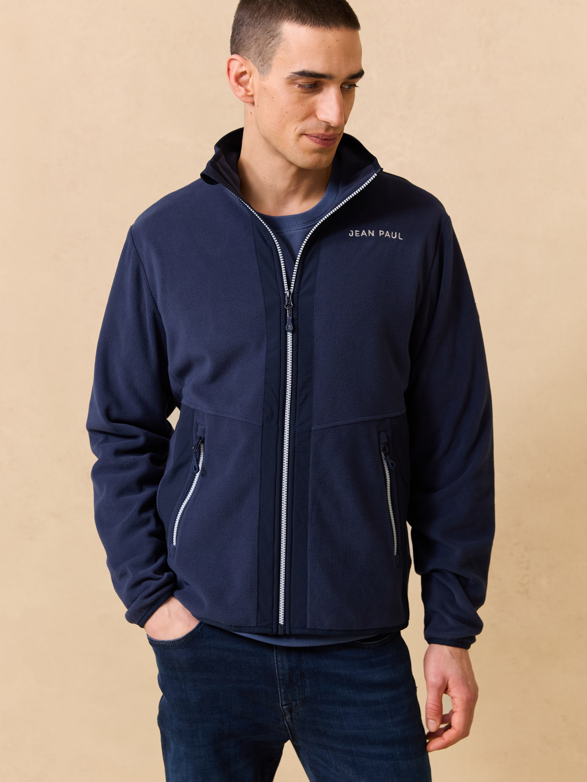 Behagelig jakke i myk fleece med glidelåslukning og besetning i ton i ton ripstop kvalitet.