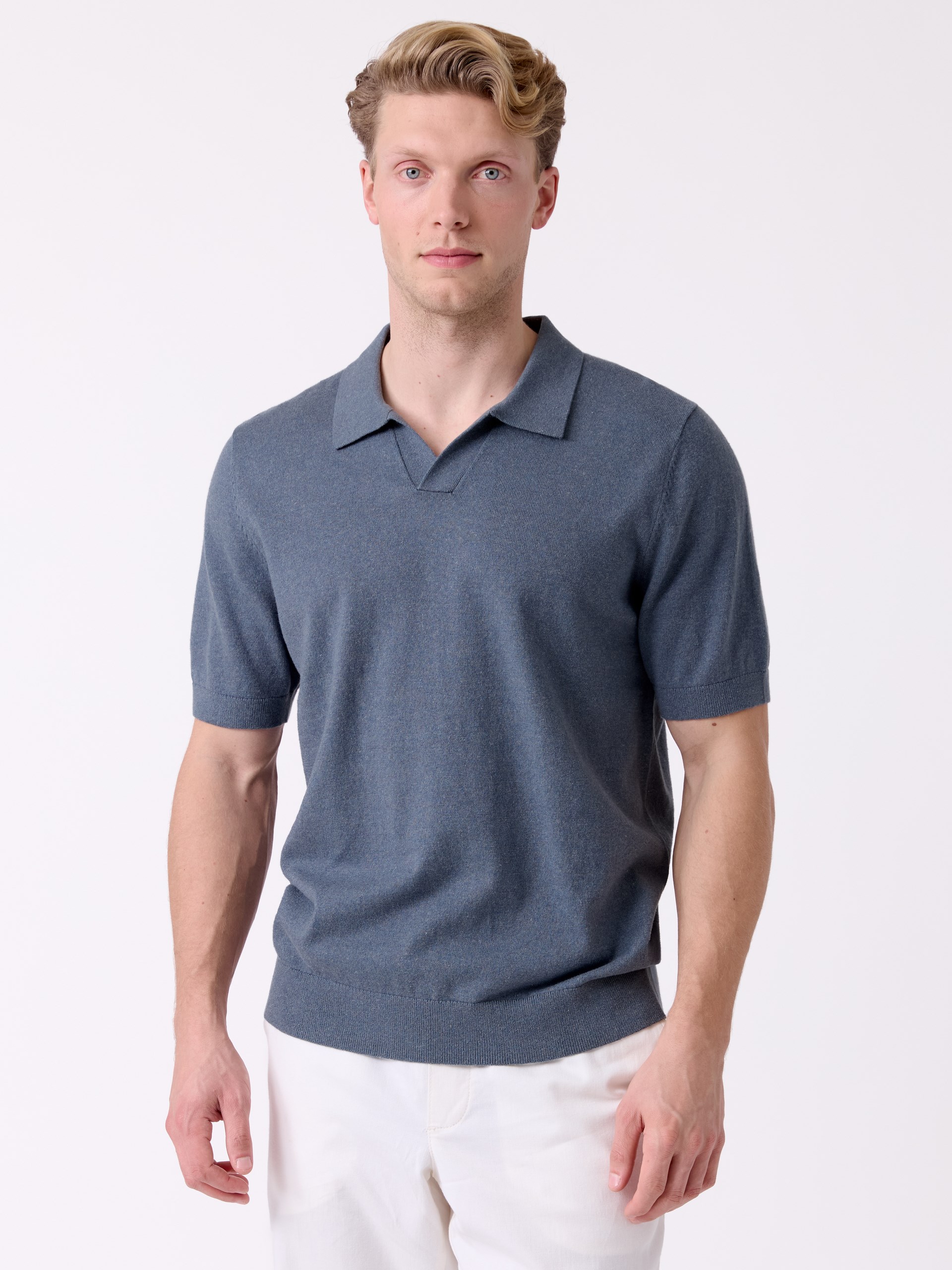 Polo t skjorte i behagelig melert bomull med lin.