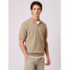 Polo t skjorte i behagelig melert bomull med lin. Polotrøyen ha rkort erm, krage og v hals, ribbestrikkede vrangborder og en liten logotab i siden. Avslappet passform.