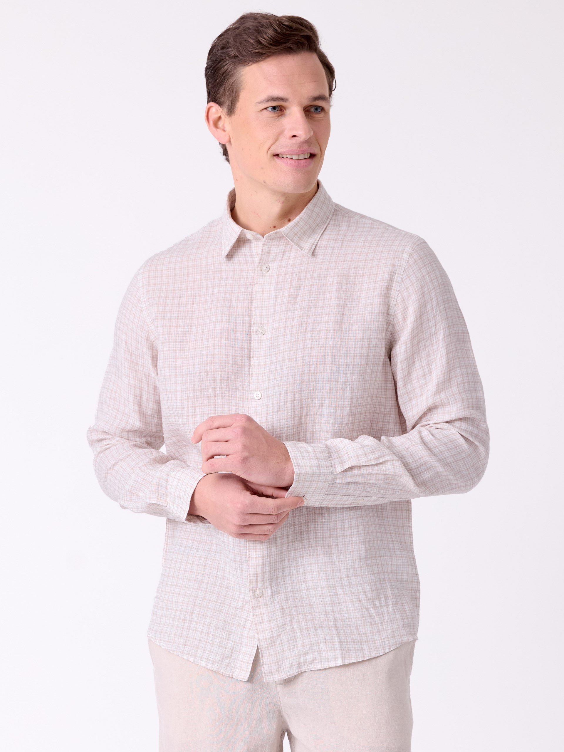 Rutet skjorte i myk lin