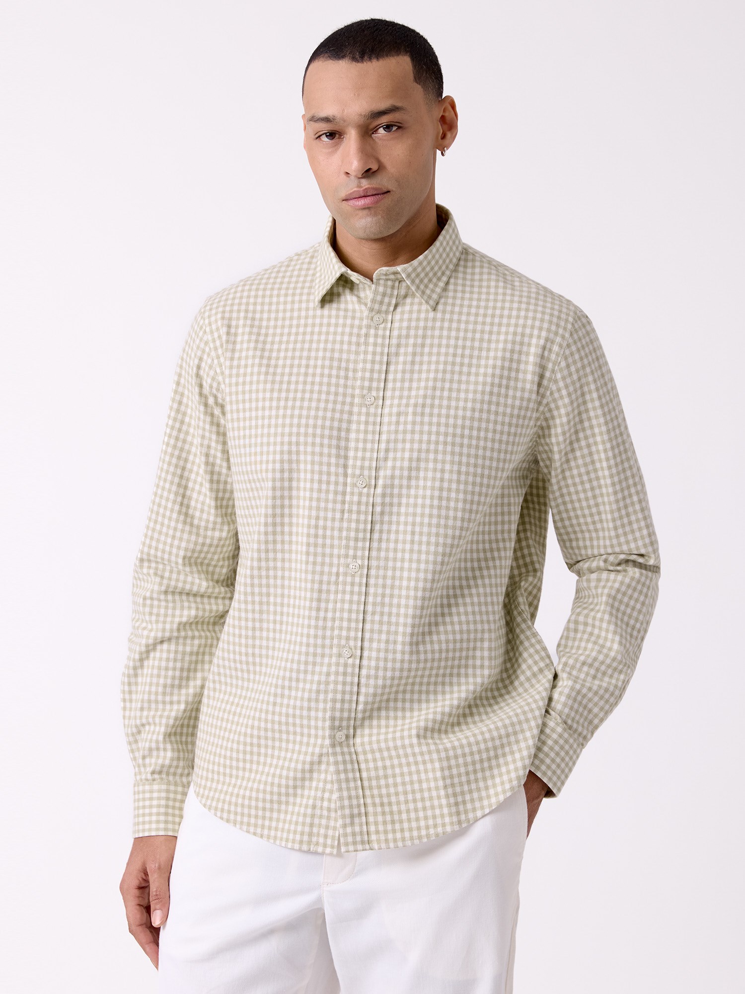 Modellen er 186 cm høy og har på seg str. LAnton oxford skjorte