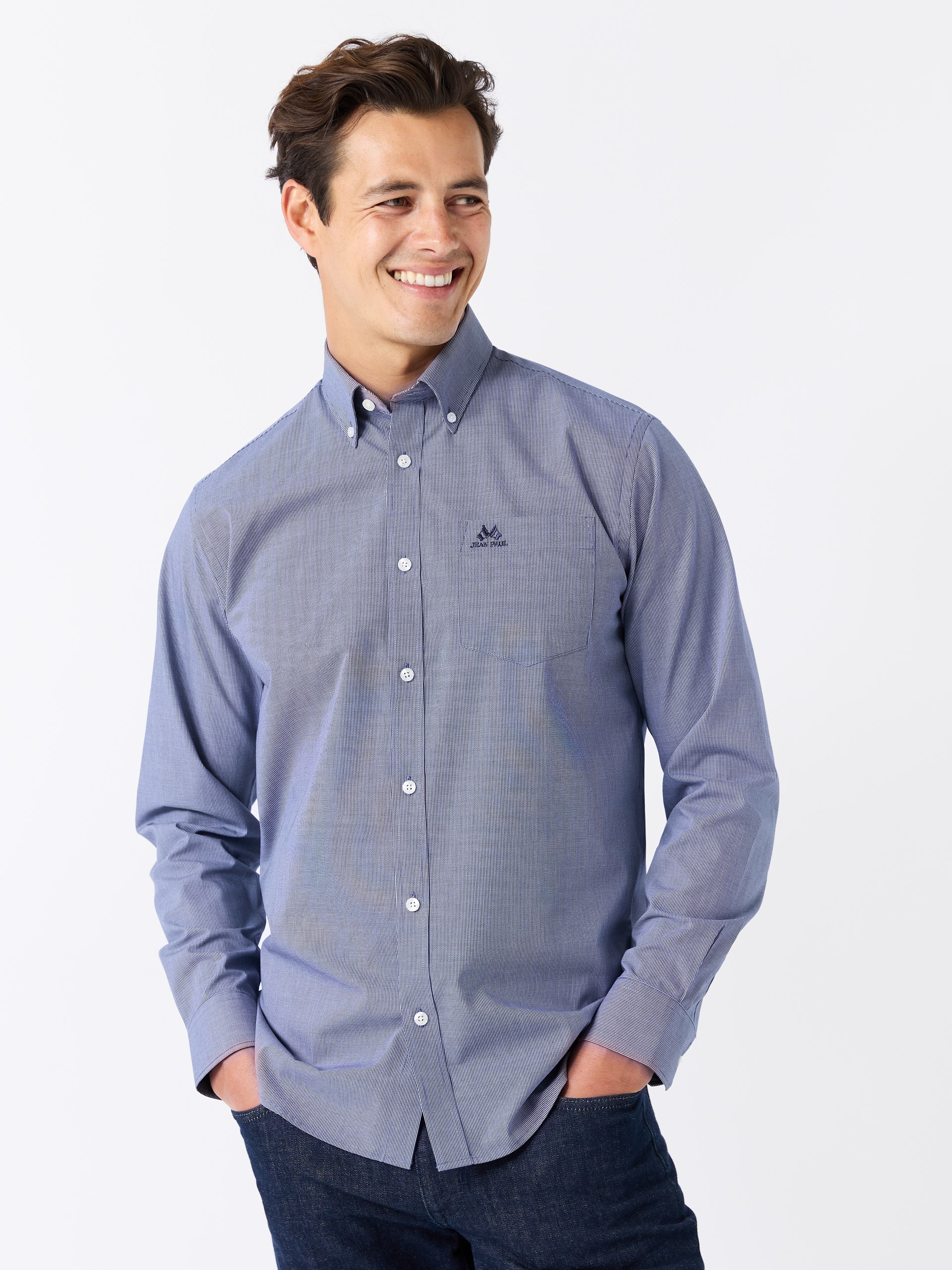 Skjorte i finstrukturert bomullsstoff behandlet med en strykefri finish som gjør plagget svært lettstelt