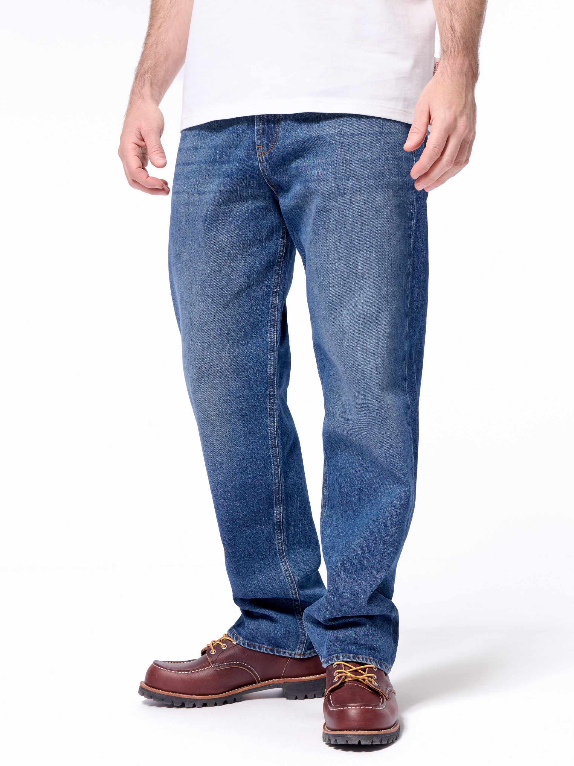 Baggy Bob vintage fra vårt PREMIUM konsept er laget i 12 oz mellomblå denim med et super steinvasket uttrykk med slitasje jevnt over. Jeansen har ledig setevidde, høyt liv og vide ben. Denne jeansen er vår passform med mest vidde. Glidelåsgylf med knapp i front og en logobadge i livet bak