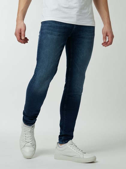 Komfortabel supersmal stretch jeans med et vasket uttrykk for de fleste anledninger. Beige skinnetikett med logo i livet bak og ton i ton detaljer. Passform: Smal setevidde, normal livhøyde og smale ben med en tettsittende silhuett. Vår yngste og smaleste passform. Kvalitet: 9.5 OZ super stretch denim i en skarp blå indigo innfarging og med meget høy elastisitet. Vask: Skarp blå grunnfarge i en lett steinvasket prosess med vaskede slitasje effekter på front og bak. Vasken gir et unikt uttrykk. Modellen er 184 cm høy og bruker str 33/32.