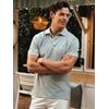 Pique i lett bomull med melering og kort erm med ribkant. Piqueten har splitter i siden, tricolorefarget tab i siden, kontrastfarget stoff i nakken og i stolpen, lyse knapper og ton i ton broderi på brystet.