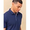 Pique i lett bomull med melering og kort erm med ribkant. Piqueten har splitter i siden, tricolorefarget tab i siden, kontrastfarget stoff i nakken og i stolpen, lyse knapper og ton i ton broderi på brystet.