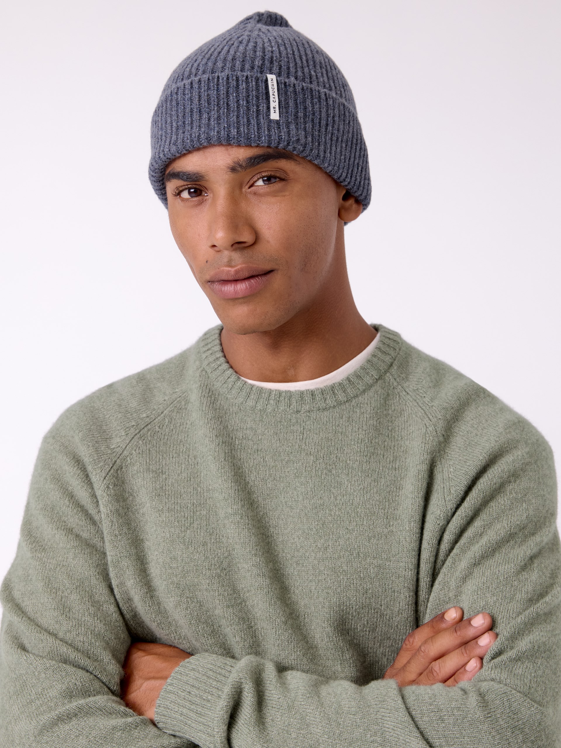 Lue i 100% lammeull. Luen har oppbrett og en liten logobadge.